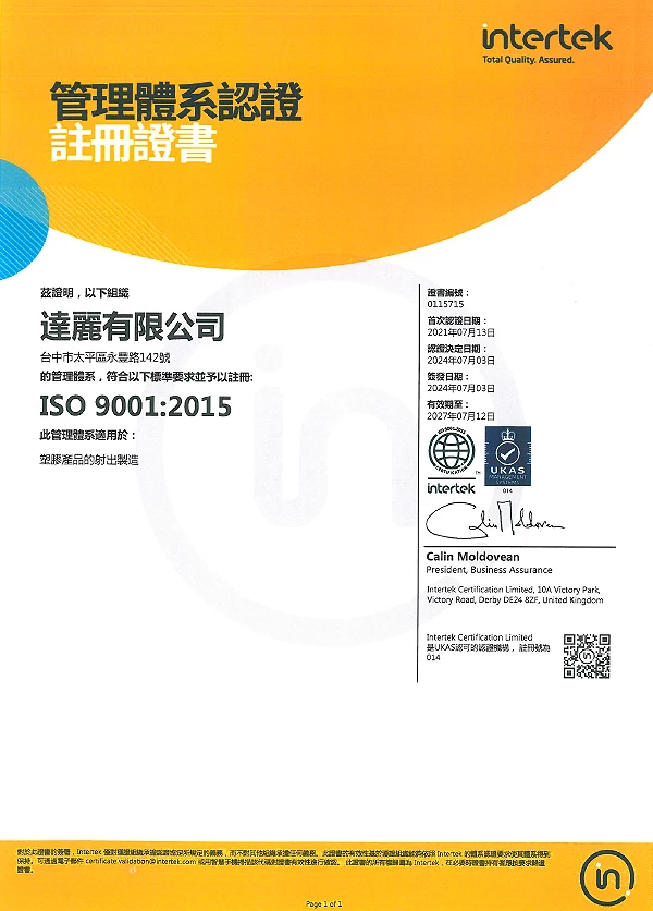 達麗有限公司成立於2001 年,主要生產縫紉機零組件、氣動工具零配件、家電用品、衛浴用品、手工具類相關產品等塑膠射出產品。 2009年投入生產民生用品-刮鬍刀,從開發模具、塑膠射出成型到組裝成品,外銷至歐美國家;